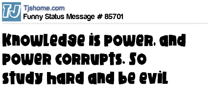 - # 42738 Knowledge is power, and power corrupts. So study hard and be evil.