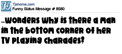 X ..wonders why is there a man in the bottom corner of her TV playing charades?