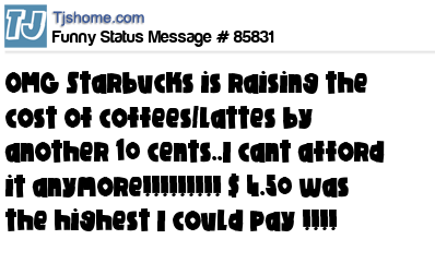 X is OMG Starbucks is raising the cost of coffees/lattes by another 10 cents..I cant afford it anymore!!!!!!!!! $ 4.50 was the highest I could pay !!!!
