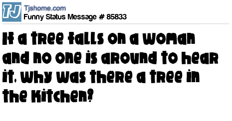 X  if a tree falls on a woman and no one is around to hear it, why was there a tree in the kitchen?
