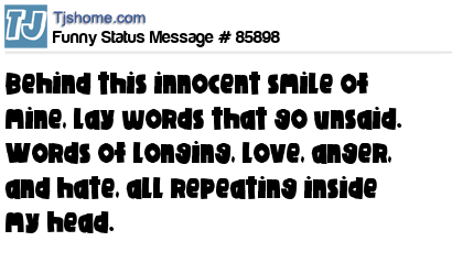 X Behind this innocent smile of mine, lay words that go unsaid. Words of longing, love, anger, and hate, all repeating inside my head.