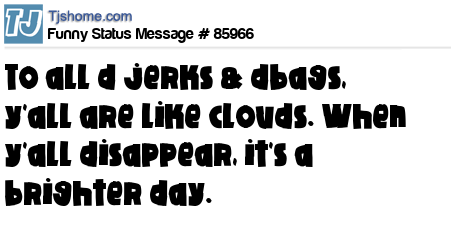 X  To all d jerks & dbags, y'all are like clouds. When y'all disappear, it's a brighter day.