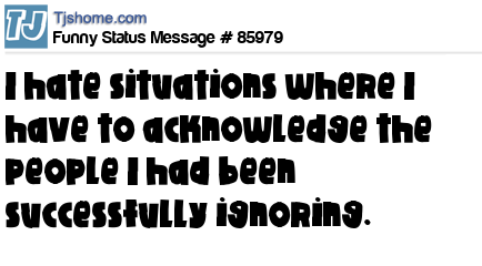 X says I hate situations where I have to acknowledge the people I had been successfully ignoring.