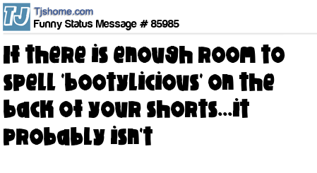 - # 99242 Ladies: If there is enough room to spell 'bootylicious' on the back of your shorts...it probably isn't