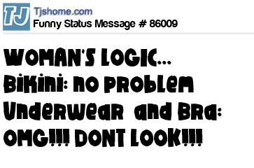 X  WOMAN'S LOGIC...  Bikini: no problem Underwear	and Bra: OMG!!! DONT LOOK!!!