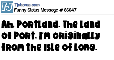 X Ah, Portland. The Land of Port. I'm originally from the Isle of Long.