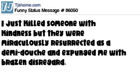 X  I just killed someone with kindness but they were miraculously resurrected as a demi-douche and expunged me with brazen disregard.