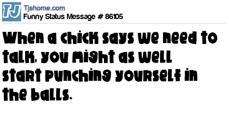 X says When a chick says we need to talk, you might as well start punching yourself in the balls.