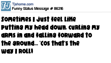 X Sometimes I just feel like putting my head down, curling my arms in and falling forward to the ground... 'Cos that's the way I roll!