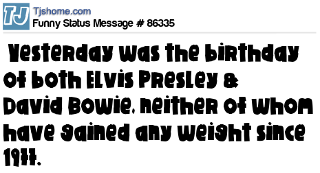 X Yesterday was the birthday of both Elvis Presley & David Bowie, neither of whom have gained any weight since 1977.
