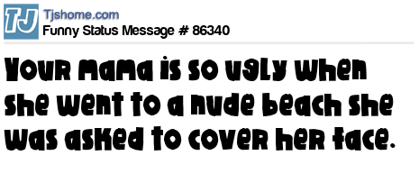X says Your mama is so ugly when she went to a nude beach she was asked to cover her face.