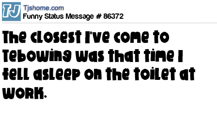 X The closest I've come to Tebowing was that time I fell asleep on the toilet at work.