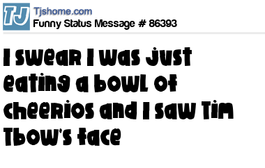 X was I swear I was just eating a bowl of cheerios and I saw Tim Tbow's face