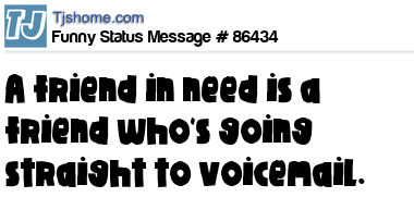 - # 47126 just once would I like to see the "Phone a Friend" lifeline on Millionaire go straight to voicemail.