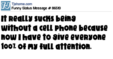 X  It really sucks being without a cell phone because now I have to give everyone 100% of my full attention.
