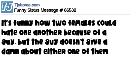 X is It's funny how two females could hate one another because of a guy, but the guy doesn't give a damn about either one of them