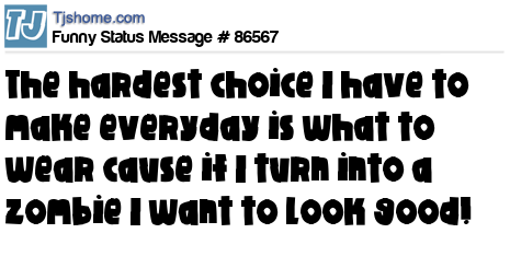 X is The hardest choice I have to make everyday is what to wear cause if I turn into a zombie I want to look good!