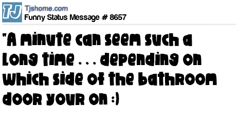 - # 77467 how long a minute is, depends on which side of the bathroom door you`re on.