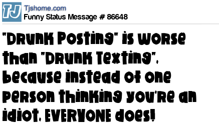 X is "Drunk Posting" is worse than "Drunk Texting", because instead of one person thinking you're an idiot, EVERYONE does!