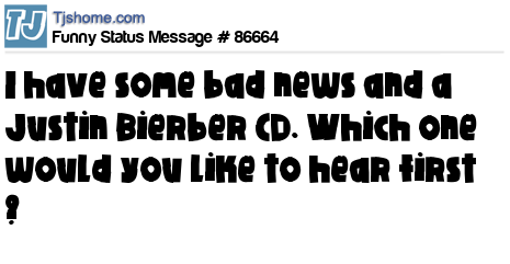 X says I have some bad news and a Justin Bierber CD. Which one would you like to hear first ?