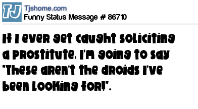 X If I ever get caught soliciting a prostitute, I'm going to say "These aren't the droids I've been looking for!".