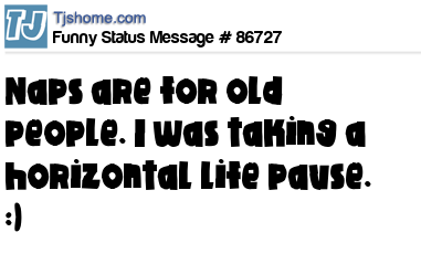 X is Naps are for old people. I was taking a horizontal life pause. :)