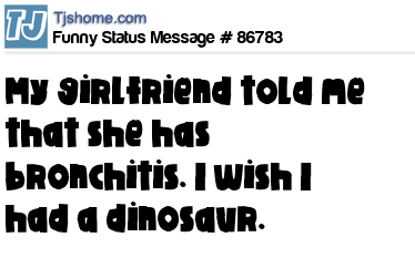 X My girlfriend told me that she has bronchitis. I wish I had a dinosaur.