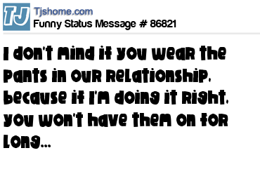 - # 87340 LADIES: I don't mind if you wear the pants in our relationship, because if I'm doing it right, you won't have them on for long...