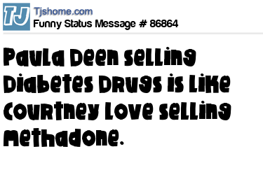 X Paula Deen selling Diabetes Drugs is like Courtney Love selling methadone.