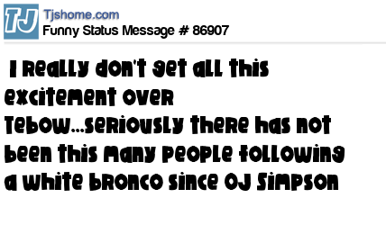 X is  I really don't get all this excitement over Tebow...seriously there has not been this many people following a white bronco since OJ Simpson