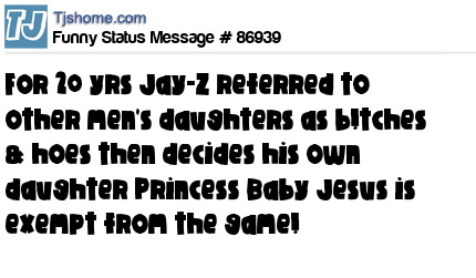 X says For 20 yrs Jay-Z referred to other men's daughters as b!tches & hoes then decides his own daughter Princess Baby Jesus is exempt from the game!