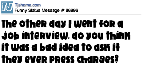 - # 28546 When you go in for a job interview, I think a good thing to ask is if they ever press charges.