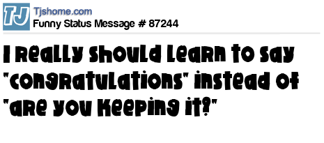 X says I really should learn to say "congratulations" instead of "are you keeping it?"