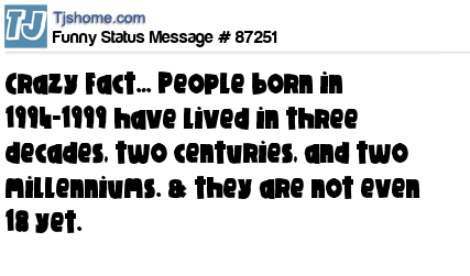 X is Crazy Fact… People born in 1994-1999 have lived in three decades, two centuries, and two millenniums. & they are not even 18 yet.
