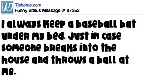 - # 82623 I keep a baseball bat under the bed just in case someone breaks in and throws a ball at me..