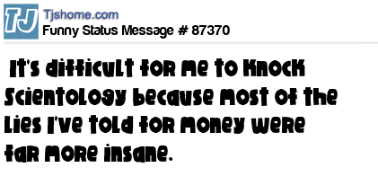 X   It's difficult for me to knock Scientology because most of the lies I've told for money were far more insane.