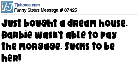 X  Just bought a dream house. Barbie wasn't able to pay the morgage. Sucks to be her!