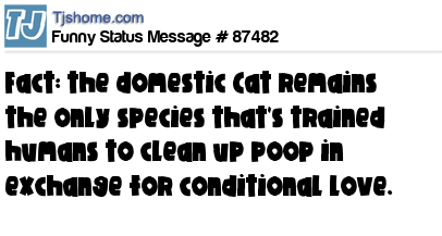 X says Fact: the domestic Cat remains the only species that's trained humans to clean up poop in exchange for conditional love.