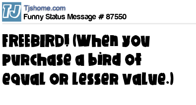 - # 60651 Really listened to "Freebird" last night. The guy is a bird you can't change. He's an unchangeable bird. And there's a guitar solo. Classic.
