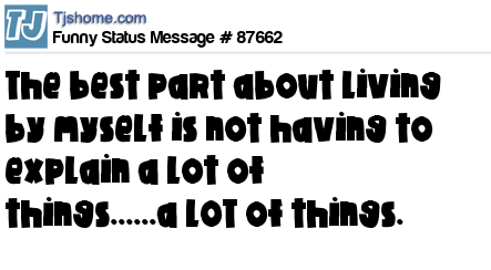 X The best part about living by myself is not having to explain a lot of things......a LOT of things.