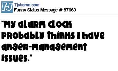 - # 18774 Just had a fight with my alarm clock. It wanted me to wake up, I disagreed. Things got violent. Now the alarm clock is broken and I'm wide awake. Not sure who won, though.