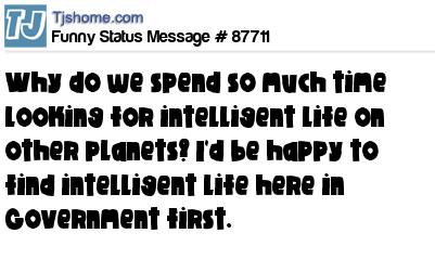 X Why do we spend so much time looking for intelligent life on other planets? I'd be happy to find intelligent life here in Government first.