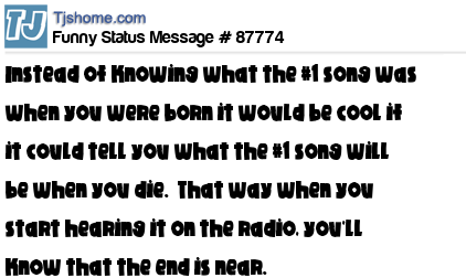 X Instead of knowing what the #1 song was when you were born it would be cool if it could tell you what the #1 song will be when you die. That way when you start hearing it on the radio, you'll know that the end is near.