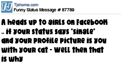 X A heads up to girls on Facebook .. if your status says "single" and your profile picture is you with your cat - Well then that is why