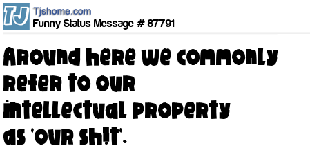 X  Around here we commonly refer to our intellectual property as 'our sh!t'.