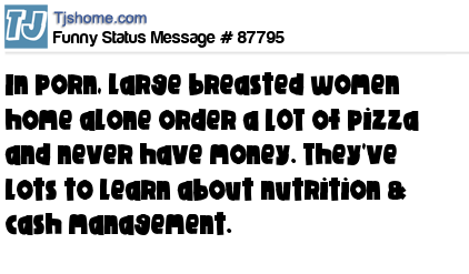 X In porn, large breasted women home alone order a LOT of pizza and never have money. They've lots to learn about nutrition & cash management.