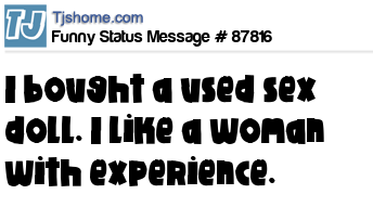 - # 146012 Bought a blowup doll today but I won't blow her up til tomorrow. Don't want to seem desperate.