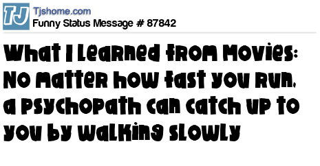 X is What I learned from Movies: No matter how fast you run, a psychopath can catch up to you by walking slowly