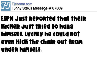 X is ESPN just reported that their kicker just tried to hang himself, luckly he could not even kick the chair out from under himself.