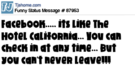 - # 46911 Finally realizing that Hotel California is about Facebook. “…you can check in anytime you like, but you can never leave…”